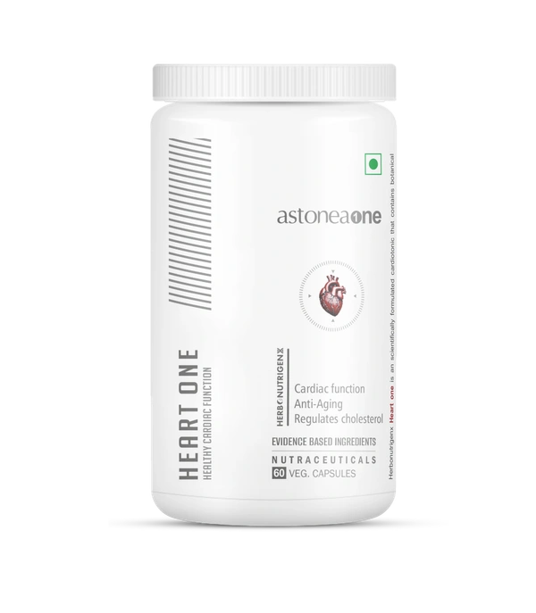 Heart One is enriched with Arjuna bark extract, Gamma oryzanol, CoQ10, Salai guggul, Astaxanthin, DHA, and Trans Resveratrol. This powerful blend supports cardiovascular health by maintaining optimal cholesterol levels, combating oxidative stress, and enhancing the heart's natural resilience. It helps prevent cardiovascular and coronary heart diseases and has anti-blocking properties to prevent artery blockage.
