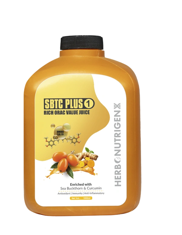 SBTC Juice is a health-boosting beverage that combines the benefits of Himalayan berry (sea buckthorn), curcumin, giloy, and ashwagandha. Known as the 'Holy Fruit of the Himalayas', sea buckthorn and curcumin have been traditionally used for their potent health benefits, including anti-inflammatory and antioxidant properties.